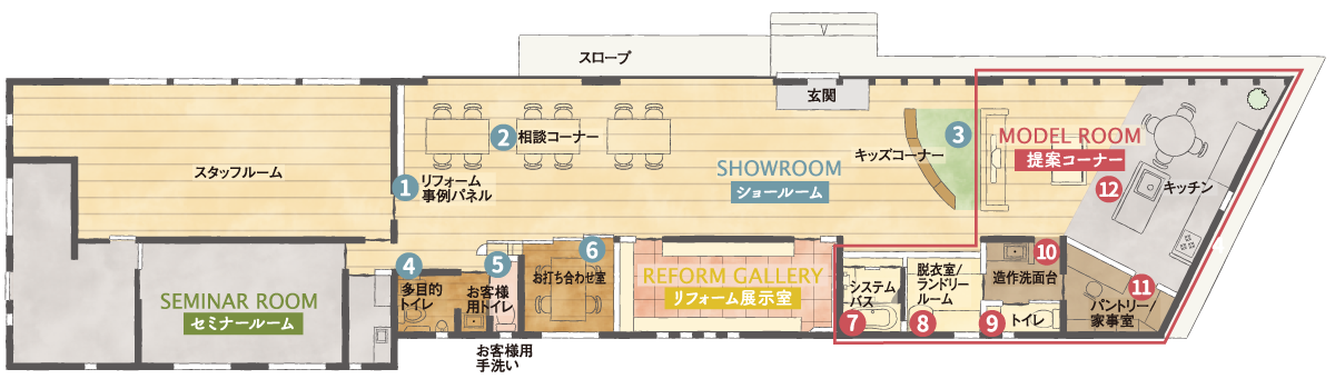 リフォームでできること、住まいの情報を詰め込んだショールーム。
