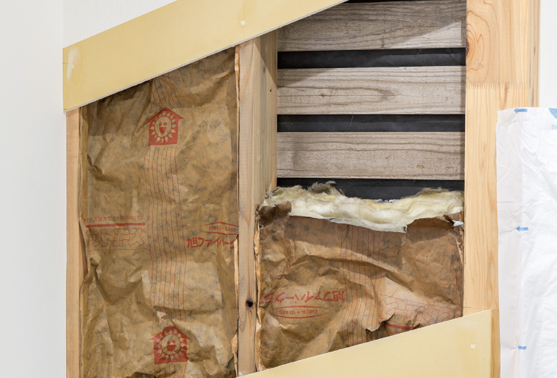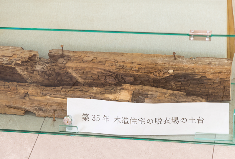 築35年の実際の家から出た土台や、築40年ほどの家の壁の内部も展示。 最新のリフォーム工事と見比べていただけます。