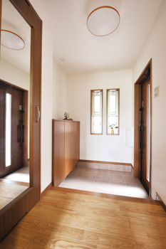| 玄関 これまで風通りの悪かった玄関ホールは小窓を着けて、 外から澄んだ空気を呼び入れている |