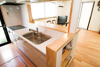 空間の有効活用でキッチンもスッキリ無垢材のぬくもりも◎