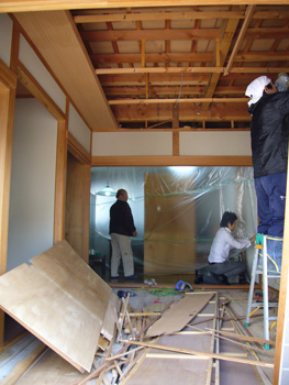 | 和室解体中 | 使える部分は残し、必要な部分に下地を入れました |