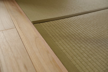 | 竹を編んだような風合いのクロスを貼った昔ながらの船底天井 | リビングの床と和室の畳の境目には開閉扉のレールもなく滑らか |