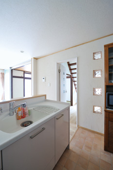 Dさんと息子さんは、自然素材である珪藻土の壁塗りも手がけた。リビングと和室、トイレ、洗面所を二日がかりで完成。中にはあえてラフに塗ることで独特の風合いを醸し出した箇所もある。実際に家の壁を塗る前に、マエダハウジング主催の壁塗り体験会に参加したこともあり、なかなかの出来映えだ。同じ珪藻土壁でも、トイレなど水まわりの壁とリビングや和室の壁では、珪藻土と砂の配合割合が異なる。高い調湿効果が求められる水まわりの壁は、「珪藻土7割:砂3割」。リビングなどはその反対の割合になっているという対面型になったシステムキッチンは、広いシンクのタイプに入れ替え、コンロはガスからIHに、給湯設備もボイラーから電気温水器へと、オール電化システムに変更。「リフォーム前に想像していた以上に家事がラクになりました」とDさんは喜びを隠せない。以前に比べてリビングそのものが明るい空間になったため、昼間はほとんど電気をつける必要がなく、省エネにもつながっているようだ。リフォーム後
