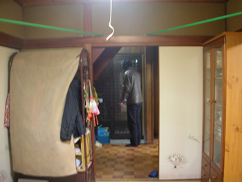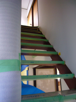 | 階段や壁を傷つけないようにしっかり養生します | 和室を解体。必要な家具は養生して置いてあります |