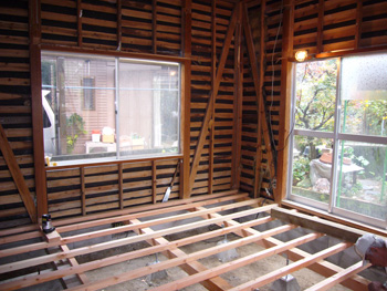 | 床を束から新しいものに取替ています。 | 断熱材もしっかり入ります。 |