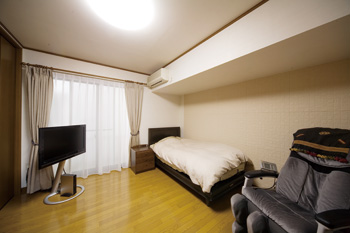 | 提案されたパースに一目惚れしたという玄関とアプローチ | 外収納を潰して空間を広げたご主人の寝室。床暖房で快適に |