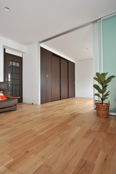 | 床の間が充実した収納に変身 | くるみの無垢フローリングを貼っていきます |