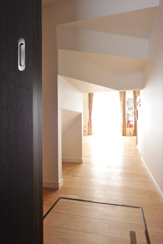 | LDKと和室の間の階段下収納。引き戸は流用した | LDKは半透明の引き戸で仕切り、閉めても明るさをキープ |