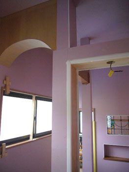 | ご主人と息子さんが自ら珪藻土を塗っています | スペイン風にしようと垂壁をアーチにしました |