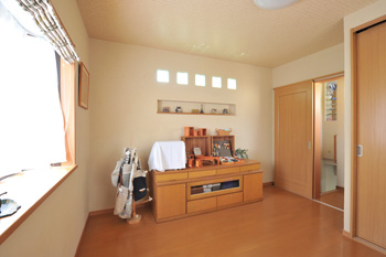 | 奥さまの部屋の窓は、掃き出し窓から出窓に変更。西側のガラスブロックで光が入るようになり、明るさが増した |