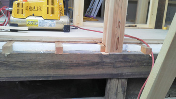 | 床下にもしっかりと断熱材を | 大引が白ありに食べられています。もちろん交換します |