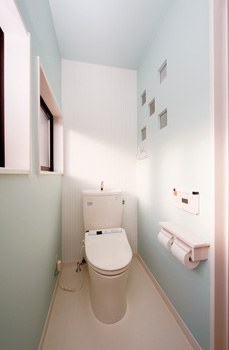 | トイレはガラスブロックを配した淡いペパーミントグリーンの壁が爽やかな印象を与える | 冬は寒さを増長するタイルを除去し、子どもたちと快適にゆったり入浴できるようになった |