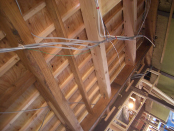 | コーディネーターと電気の位置を打合せ。出来上がった時の使い勝手を考え入念にチェックします | 配線もすべて新しいものに取替 |