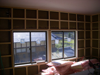 | 和室から洋室に変更。下地を作っていきます | 暗かった部屋もこれで太陽光がたっぷり入ります |