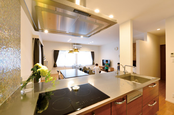 インテリアや雑貨が好きなY様ご夫婦は、本誌の事例を見てリフォームで住まいが劇的に変化することを知り、「わが家がこんなに素敵になるのならやってみたい!」と、マエダハウジングに電話。家族が多くの時間を過ごすLDKをリフォームすることに。まず、外光がほとんど入らず暗かったキッチンは、リビングとの間の垂れ壁を取り払って明るく開放的な空間にしたいと要望。壁際に食器棚を配置し、外光の取り込みとインテリア的なアクセントにするべく、壁にガラスブロックをはめ込んだ。新しいキッチンは弟夫婦に同行したマンションの現場見学会でステンレスキッチンを見て憧れ、デザイン性の高いTOYOキッチンを選択。壁には光を受けてキラキラ輝くベネチアンタイルをあしらい、スタイリッシュ感アップ。ダイニングテーブルを照らす照明やカーテンのセレクトも妥協せず、クォリティの高いものを思い切って選んだという。そのせいか、明るく開放感が生まれたLDKには上質感が漂い、広さは変わらずともゆとりが感じられる空間に。また、クローゼットの半分をご主人の要望でパソコンコーナーに活用し、落ち着いて調べ物や読書ができる場所を確保。悩みながらも上級コーディネートをやり遂げた結果、二人のイメージ通りのLDKに生まれ変わった。
