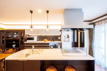 アイランド型を大胆に配置してキッチンが家族の集う場所に