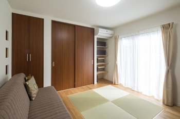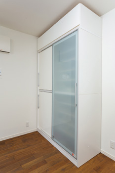 | 押し入れの隣には可動棚を取り付け、 便利な収納スペースを確保 |