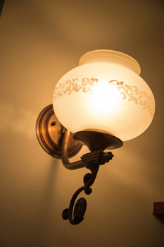 | 勝手口があったキッチンの後ろには、新しく大容量の食器棚を設置した | リビングを照らしていた既存のブラケットライトを再利用 |