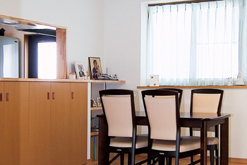 | 半透明の間仕切りは圧迫感無く天井レールで、床もすっきり。 | 奥様の妹さんがお勤めのショールームで選んだこだわりキッチンはIHだからお掃除も簡単きれい。 |