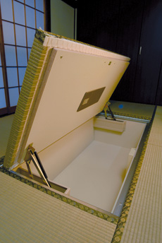 和室を常に整然と保つワイドクローゼットと畳1畳分の床下収納庫