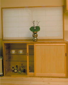 | オーダー家具 オーダー家具は片面をガラス、もう片面を見えない扉にと工夫している |