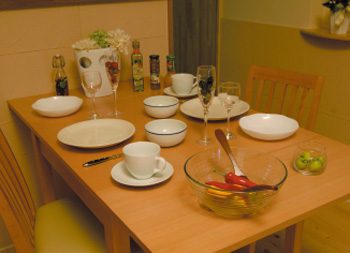 | ダイニング 普段はテーブルを縮めて、空間を有効に活用 |