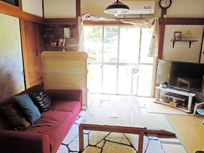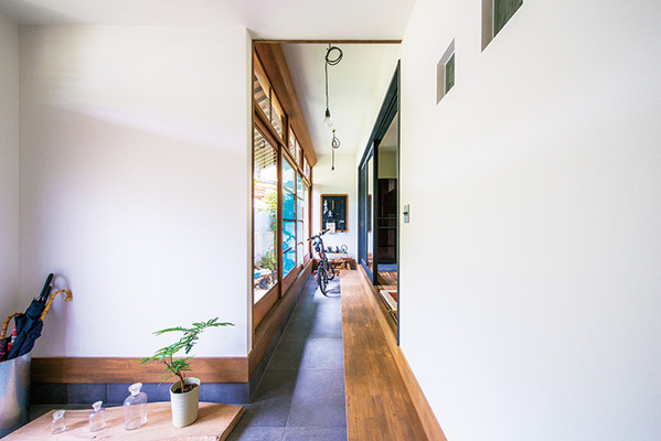 | 自転車置き場にもなった土間。「夏は風が気持ちいいので読書をしたい」と奥様 |