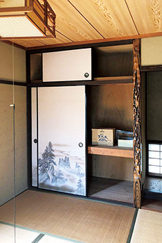 家型のニッチはご夫婦ともお気に入りで、O様邸のテーマとして玄関や子ども室のクロゼットに採用。子ども室は部屋を広く使えるよう、収納入り口を家型にし、扉を付けずオープンに。柄入りの壁紙を組み合わせてオリジナリティー豊かに仕上げた。