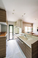 | 独立していたキッチンが対面型になり、リビングダイニングにいる家族とのコミュニケーションも円滑に。 | 背後には奥行きのあるパントリーも確保したキッチン。収納スペースが増え、家事動線がスムーズになった。 |