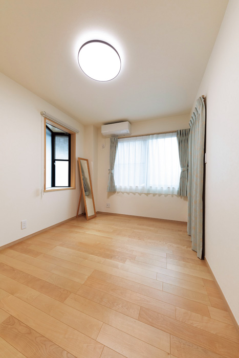 和室は床の間があった奥行きを残して多目的な洋室に変更。窓は既存の位置に、断熱・遮音性の高い2重窓を採用。見栄えと実用性を両立させている。