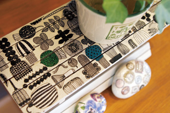 | 奥様が、石や木製台などの表面に柄入りの紙を貼り付けて作ったデコパージュ作品もこの空間になじんでいる | 中央の作業スペースが広いTOTOのシステムキッチンを新しく採用し、料理がしやすくなったキッチン。吊り戸棚が無くなったことで圧迫感からも解放された |