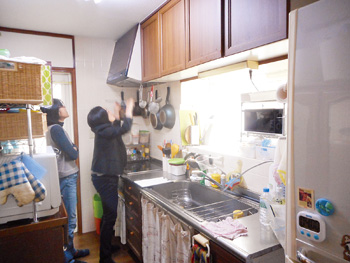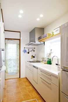 | クッションフロアを貼り替え、勝手口を一新し、生まれ変わった独立型キッチン。「これからは私の個室感覚で使えそうです」と奥様 | |