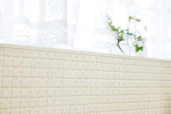 家族がくつろぐリビングダイニングには、奥様の手によるハンドメイド作品が随所に。これらの作品やディスプレー小物が映えるよう、テレビ台の背面の壁にはチャコールグレーのクロスを採用。床には表面に無垢材を貼った合板フローリングを敷き、温もりある風合いに仕上げた。以前は、学校から配布される連絡事項のプリントはコルクボードに貼っていたが、子どもたちの成長とともに不要になることが予想されるため、アイアンとフックを利用して手作りリースなどと共にディスプレーの一つとして吊すアイデアも見事だ。フック一つにしても、女性コーディネーターと相談を重ねながら決め、奥様好みの空間が完成。「既存部分や手持ちの家具との調和がとれた、明るめのナチュラルテイストのコーディネートになりました。間取りを変えなくても、イメージをガラリと変えることができて満足しています」と奥様。部屋を彩る奥様の作品も、ますます増えていきそうだ。