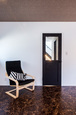 大理石を思わせるフローリングの床と白い壁、ガラス窓で見通せるリビング扉。くつろぎ感を演出するインテリアが上質な空間を醸し出す。 |