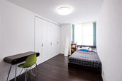 | 白が基調のクロスにフローリングを採用した娘さんの部屋。今までの落ち着かない毎日がすっかり解消され、帰宅してからくつろげるプライベート空間に。収納力たっぷりのクロゼットもポイント。 | 2階に確保したご主人のプライベートルーム。天井のクロスが彩りを添える。自分ひとりだけの時間を過ごせる隠れ家。 |