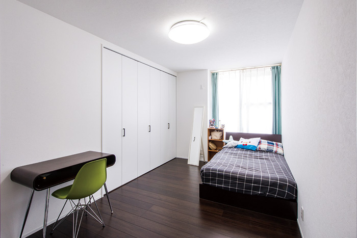 N様ご家族の要望は、教室をなくしたプライベート住宅。柔道選手として活躍する息子さんの試合の応援で、宿泊の機会も多かった奥様は、ホテルのようにくつろげる空間を希望した。宿泊時に撮りためた写真が役に立ったと笑う。教室は新たに近所へ独立させ、教室として使っていた2階は一人一人のプライベート空間に再生。保育士の娘さんは「やっと落ち着く家になった」と笑顔を見せる。