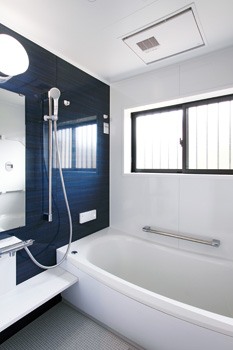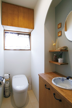 | ご主人が一番くつろぐ場所というお風呂は、保温性にも優れているTOTOのもの | 奥様お気に入りの手洗いボールや鏡など、こだわりが随所にちりばめられたトイレ |