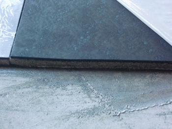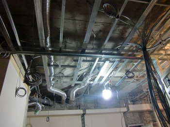 | 電気配線も取り替えています | 無垢床材を貼るために、防音材を下地に貼っています |
