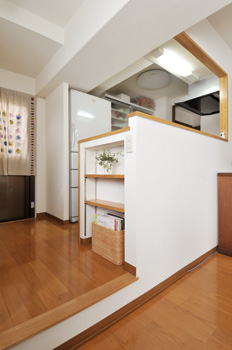 マンションに入居した20年前から、キッチンが壁際にあったため、家族に背を向けて家事をしなければならず、大きな孤独感を感じていたという奥さま。昼でも照明なしでは暗くて家事がやりづらいこともあり、長年不満を抱いていた。そんな中、子どもさんは独立し、ご主人が定年退職を迎えたタイミングを見計らい、奥さまはリフォームの実現へと動き始めた。経年による壁紙の劣化や、玄関のたたき部分が狭いなどの悩みも、この際一挙に解決しようと考えたのだった。