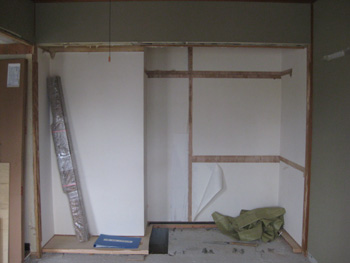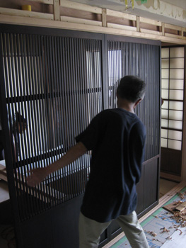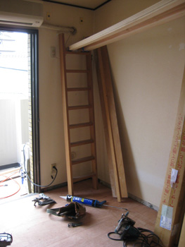 | 古民家から手に入れた格子戸を入れるため建具屋さん調整中 | マンションの天井高を利用してロフトを造作 |