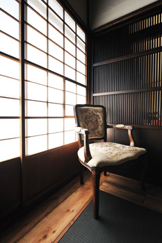 アンティーク家具が好きな奥さまのリフォームのポイントは、アンティークな趣。LDの洋の趣に対し、和室を和の趣で装い、異なる2つの空間が違和感なくつながるようにしたいと要望した。建材は自身の目で見てセレクト。同社ショールームを訪ねた折に古材に興味を抱き、梁、格子戸、床などに用いることにした。さらに、仏間&床の間、収納引き戸、壁、箪笥、照明器具なども徹底して和のテイストで統一。大正ロマン風の落ち着いた空間が完成した。