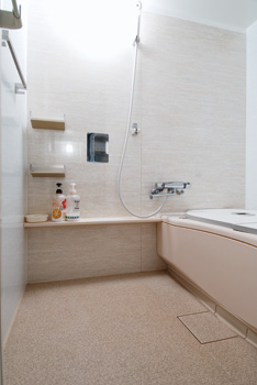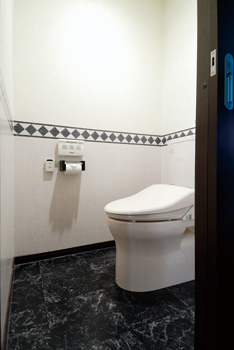 | 石目調の壁が高級感を醸し出す浴室 | 品のよさを感じさせるトイレ |