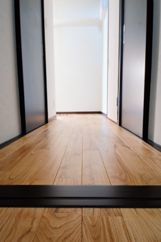 | 廊下とLDKの間にあった段差を解消 | 無垢のサクラのフローリングがカジュアルな雰囲気を漂わせる洋室 |
