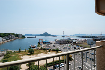 | ベランダからはもちろん、LDKや和室からも一望できる美しい海景色 | 和室との間仕切りには、クローゼットを思わせる洒落た3枚引き戸を採用 |