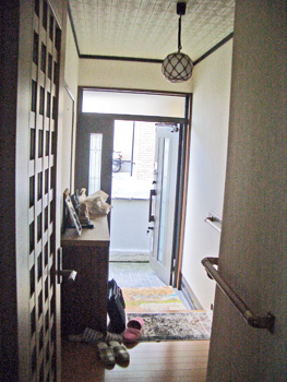 靴を履かずに奧の靴箱に到達するための木製台はご主人のお手製。