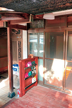 玄関扉はバリアフリーを考慮、光を通す引き戸に