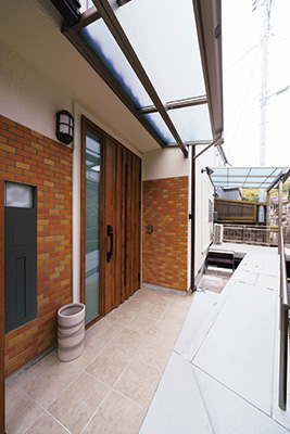 お祖母様との同居にあたり、お祖母様が快適に過ごせるようバリアフリーリフォームを行ったM様。玄関から道路の間には緩やかに下るスロープと手すりを設置して、お祖母様や来客が安全に行き来できるようにした。