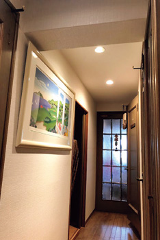 廊下はシンプルなクロスでまとめギャップを体感させる