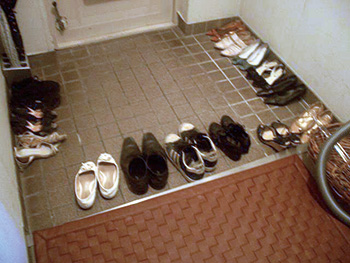 「感覚的に広く感じられる住まいに」と願ったMさんのリノベーション計画。部屋全体を白とブラウンで統一し、かといって無機質ではない温かみのある雰囲気だ。 その住まいの顔と言える玄関は、やはり濃いブラウンの床材に白い壁と、ハイセンスな表情。廊下を兼ねたホールの左側がリビングダイニングに続く。土間の白いタイルもMさん夫妻にふさわしく、すっきりと大人っぽい印象を持つ。また鏡のついた大容量のシューズボックスの収納扉や飾り棚を新しく設け、奥行き感や清潔感を感じられるものになった。 こうしたこだわりは主にご主人。時間をかけて打ち合わせを重ねて納得できるものになった。