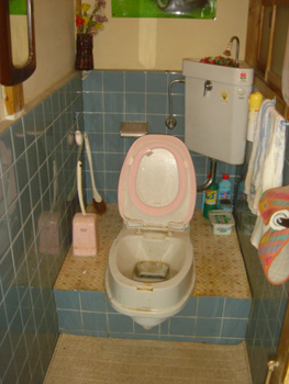 段差のある和式のトイレ、おじいちゃんも使いがってが悪く困難です。 |